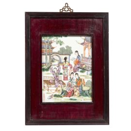 中国 二十世纪 粉彩花鸟人物瓷板画两组四件 尺寸 29 x 21,7厘米