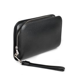 In pelle Taiga nera, una Pochette unisex, anche da usare come porta documenti o come seconda borsa, datata 2007; con mani gli otto in pelle da indossare al polso.