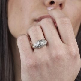 in oro bianco 18kt, impreziosito sulla sommità da pavé di diamanti taglio brillante per ct 1 circa, mis. 54, gr. 7