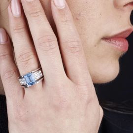 AQUAMARINE AND DIAMOND BAND RING IN 18KT WHITE GOLD