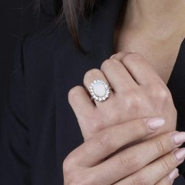 MARGUERITE-SHAPED OPAL AND DIAMOND RING IN 18KT WHITE GOLD