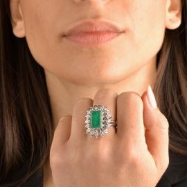 EMERALD AND DIAMOND FLORAL RING IN 18KT WHITE GOLD