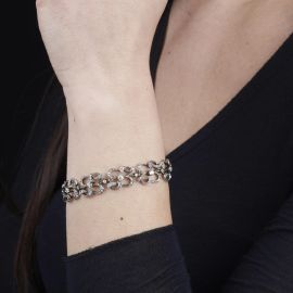 in oro e argento, composto da una serie di maglie a nastri intrecciati, impreziosito da diamanti taglio vecchio e a rosa per ct 1.20 circa, lungh. cm 17, gr. 17