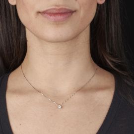 in oro bianco 18kt, composta da catena e pendente con diamante taglio brillante di ct 0.30 circa, punzoni 750 e del fabbricante, lungh. cm 41, gr. 1