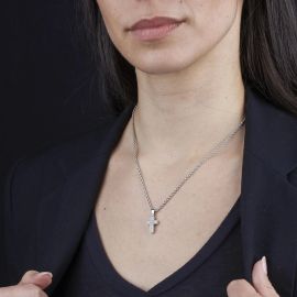 NECKLACE WITH A CROSS-SHAPED PENDANT IN 18KT WHITE GOLD