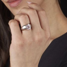 di cui uno in argento, impreziosito da una kunzite taglio ovale, punzoni 925 e del fabbricante, mis. 53, gr. 4; accompagnato da un secondo anello in oro giallo e bianco 18kt, con pietra semipreziosa centrale affiancata da diamanti taglio brillante per ct 0.40 circa, gr. 8