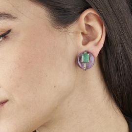 PAIO DI ORECCHINI CON SMERALDI E AMETISTE