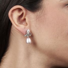 PEARL AND DIAMOND DROP EARRINGS IN 18KT WHITE GOLD