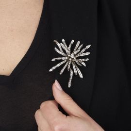 DIAMOND FLORAL BROOCH IN 18KT WHITE GOLD