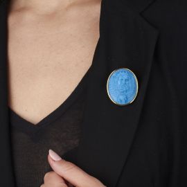 TURQUOISE PASTE BROOCH IN 18KT YELLOW GOLD