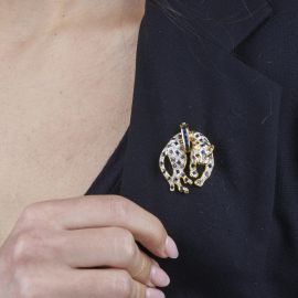 PANTHERE-SHAPED PENDANT/BROOCH IN 18KT TO TONE GOLD