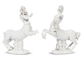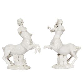 in porcellana acroma, realizzate in un impasto duro con spaccature. Le due piccole plastiche raffigurano una coppia di centauri: l’uomo barbuto probabilmente tendeva un arco, ora perduto, ed è cinto da una faretra, mentre la donna porta una cornucopia; cm 16x14x6 ciascuna