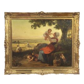 MADRE CON BAMBINO IN UN PAESAGGIO CAMPESTRE