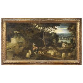 PAESAGGIO CON PASTORE, GREGGE E VIANDANTI