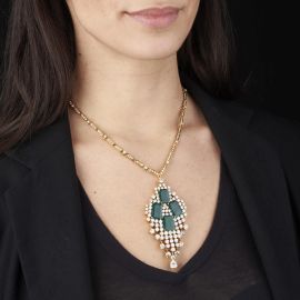 SYNTHETIC EMERALD AND DIAMOND NECKLACE IN 18KT YELLOW GOLD