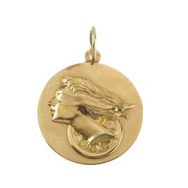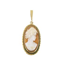 di cui uno in oro giallo 18kt, raffigurante la Dea Fortuna, punzoni 750 e del fabbricante, dim. cm 3x4 circa; un secondo pendente con cammeo in oro giallo 18kt, punzone 750, dim. cm 1,5x3,5; accompagnati da un terzo ciondolo con sterlina in oro giallo 18kt, punzoni 750 e del fabbricante, dim. cm 2,5x3,5, gr. 23 complessivi