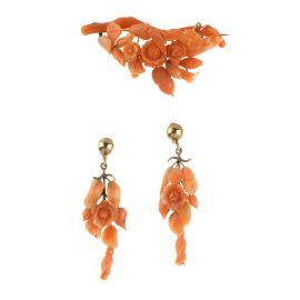 LOTTO COMPOSTO DA DEMI PARURE IN CORALLO E ANELLO A LOSANGA
