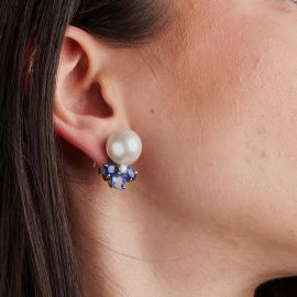 SOUTH SEA PEARL SAPPHIRE AND DIAMOND EARRINGS IN 18KT WHITE GOLD