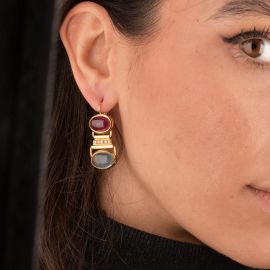 SEMIPRECIOUS STONE AND DIAMOND EARRINGS IN 18KT YELLOW GOLD