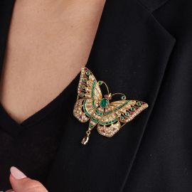 BUTTERFLY-SHAPED MULTI GEM BROOCH IN 18KT YELLOW GOLD