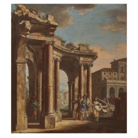 ARCHITECTURAL RUINS WITH MYTHOLOGICAL SCENES