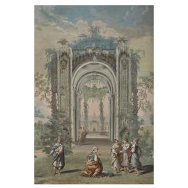 Parte di un ciclo di sei scene ispirate alle Aventures de Télémaque di Fénelon (1699) le bellissime tempere qui presentate ornavano le sale della villa già Boncompagni che a seguito del matrimonio con Eleonora Colonna nel 1743 apparteneva al conte Sicinio Pepoli.La decorazione della villa ad opera di Carlo Lodi e Antonio Rossi, che per essa dipinsero almeno ventidue scene di paesaggio con soggetti diversi, deve circoscriversi tra quella data e il 1751, quando tutte sono registrate nell’inventario di Sicinio Pepoli.L’intero ciclo, in parte esposto alla storica mostra sul Settecento emiliano del 1979, rimase in loco fino al 1986 quando la villa, allora di proprietà Barbieri, fu ceduta. Alcune tele, ma non tutte, furono vendute in asta da Christie’s e in quell’occasione vincolate. Due di esse sono presentate in questa occasione, insieme a una terza non vincolata.