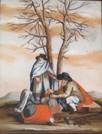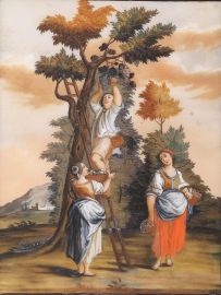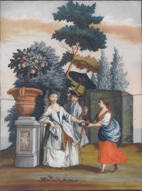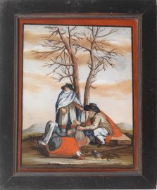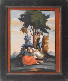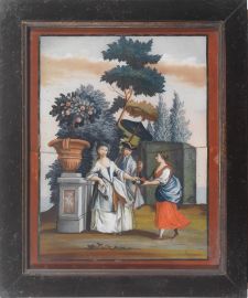 serie di quattro dipinti, olio su vetro, cm 29,5x23,5