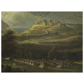 VEDUTA CON ACCAMPAMENTO E BORGO SULLO SFONDO