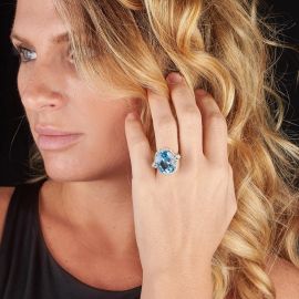 AQUAMARINE AND DIAMOND RING IN 18KT WHITE GOLD