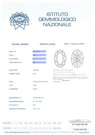 in oro bianco 18kt, al centro un diamante taglio ovale di ct 5.04, colore G, purezza SI2, sulla fascia una fila di diamanti taglio brillante per ct 0.60 circa, punzoni 750 e del fabbricante, mis. 13, gr. 4. Corredato di certificato IGN (duplicato) del 11/12/2020 attestante le caratteristiche della pietra centrale.