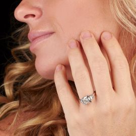 in oro bianco 18kt, impreziosito al centro da un diamante taglio vecchio di ct 1.50 circa, affiancato da diamanti taglio baguette per ct 0.50 circa, mis. 13/53, gr. 4