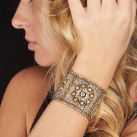 BUCCELLATI 1920's IMPORTANT "TULLE" WIDE BAND BRACELET IN SILVER AND GOLD