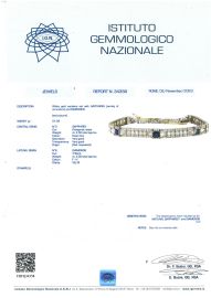 in platino e oro bianco 18kt, impreziosito da file di diamanti taglio trilliant per ct 3.30 circa e taglio vecchio, con al centro tre zaffiri taglio ottagonale per ct 4.50 circa, lungh. cm 36, gr. 51