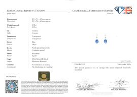 in oro bianco 18kt, impreziositi da due zaffiri birmani taglio cuscino di ct 2.98 e 2.72, con diamanti taglio vecchio per ct 2 circa, chiusura a farfallina, lungh. cm 2 circa, gr. 5 complessivi. Corredati di certificato GCS del 22/09/2023 attestante l'origine geografica delle pietre e l'assenza di trattamenti termici.