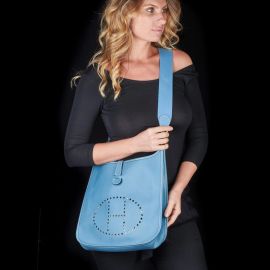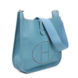 Super chic, borsa a tracolla Hermès Evelyne I in pelle Epsom turchese con metalleria in argento invecchiato, tracolla regolabile in tela da portare in spalla o a tracolla.