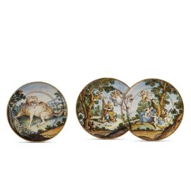 in maiolica dipinta in policromia a gran fuoco; diam. cm 32,5, alt. cm 4,5