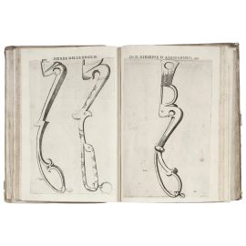 In folio (328 x 222 mm). [viii] 811 [11] pp., ritratto calcografico del dedicatario Carlo VI sottoscritto Filippo del Grado (che firma anche le tavole di scherma). Piena pergamena rigida coeva con tassello al dorso “ALESAND | VIRTU | SVELATA”, tagli spruzzati di rosso. -- Assente l’ultima carta 5M2, presumibilmente bianca, testo slegato tra le pp. 484 e 485, alone alla carta 4G4 (p. 601), ma nel complesso buona copia genuina con incisioni fresche.