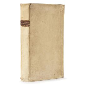 In folio (336 x 212 mm). [20 (di 24, assenti il frontespizio e la carta [ast]5)] 432, [18 (di 20, assente l’ultima bianca)] pp. e 78 incisioni calcografiche, di cui la maggior parte sono mappe, piante di città e vedute a doppia pagina, alcune a piena pagina e quelle numerate 64-69 e 74-75 a mezza pagina. Pergamena rigida settecentesca con tassello in marocchino rosso al dorso, tagli azzurri. – Assenti il frontespizio e la carta [ast]5, restauri ai margini delle prime carte, fioriture e bruniture, qualche restauro occasionale e altri minori difetti.