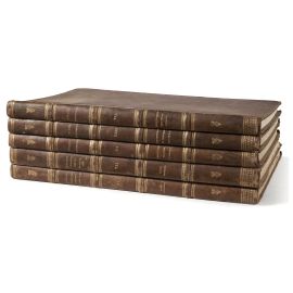 FIRST EDITION in five volumes which include the Geographical Atlas in two volumes with 129 engraved maps and plans, and the Illustrative Atlas in 3 volumes with 268 magnificent engraved views. The large map of Italy in 15 sheets, two maps and a plate from the Illustrative Atlas are missing. Translation of description and condition report upon request.