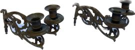 Pair of two-flame candle holder arms in metal modeled with scrolls and plant motifs, 19th century. XIX