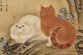 su seta raffigura la scena di due gatti sotto un albero, mentre un terzo gatto si arrampica su un antico albero morto con un piccolo ramo di fiori che sboccia. Quest'opera è arricchita da un breve racconto che spiega la motivazione dietro la sua creazione ed è firmata da Zhang Pan.