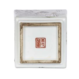 di forma Fangping con due prese a forma di drago Chilong, dipinto con due scene. Una delle scene rappresenta WangZhang mentre prega una pietra Taihu, mentre l'altra raffigura Xishi che lava uno tessuto in seta. Il vaso è firmato da Dafan Wangkun, noto come uno degli otto Zhushanbayou, testimoniando l'abilità e la reputazione di quest'artista nel panorama artistico.