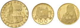CECOSLOVACCHIA. REPUBBLICA SOCIALISTA (1960-1990). ZECCA DI KREMNITZ. TRE MONETE (3 DUCATI 1973 SERIE “CATTEDRALI”, 100 LET O DUCATO 1970 “LENIN” E DUCATO 1971 “JOSEF E JOSEFINA MANES”)