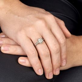 in oro bianco 18kt, al centro un diamante taglio vecchio di ct 1.20 circa, affiancato da diamanti taglio vecchio, mis. 14/54, gr. 4