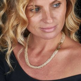 fermatura in oro giallo 18kt, impreziosita da diamanti taglio brillante per ct 0.50 circa, lungh. cm 43, gr. 21