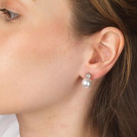 PEARL AND DIAMOND EARRINGS IN 18KT WHITE GOLD
