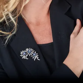 FLOWERING BRANCH SAPPHIRE AND DIAMOND BROOCH IN 18KT WHITE GOLD