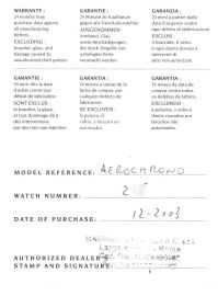 DUBEY & SCHALDENBRAND AEROCHRONO N. 2XX ANNO 2003