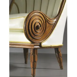 «NAUTILUS» ARMCHAIR, WOODEN STRUCTURE, WHITE LEATHER UPHOLSTERED