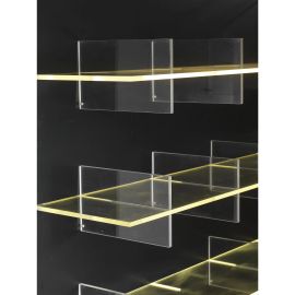 struttura in legno compensato laminato nei toni del nero, ripiani in plexiglass